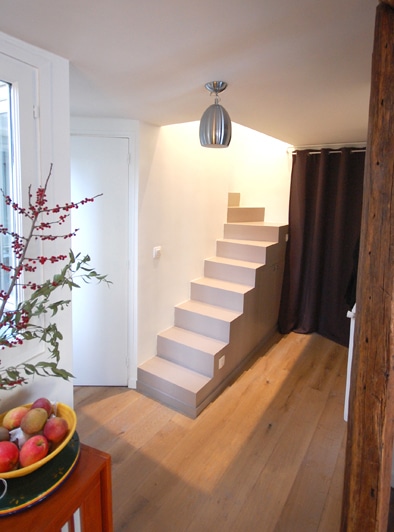 - Si la hauteur de marche est trop importante (au dessus de 65 cm), l’escalier est raide comme une échelle de meunier. C’est bien pour une mezzanine mais pas pour un escalier que l’on monte et descend dix fois par jour. Réservez cette option pour accéder à un coin couchage dans une chambre ou au bureau d’appoint au-dessus du salon.