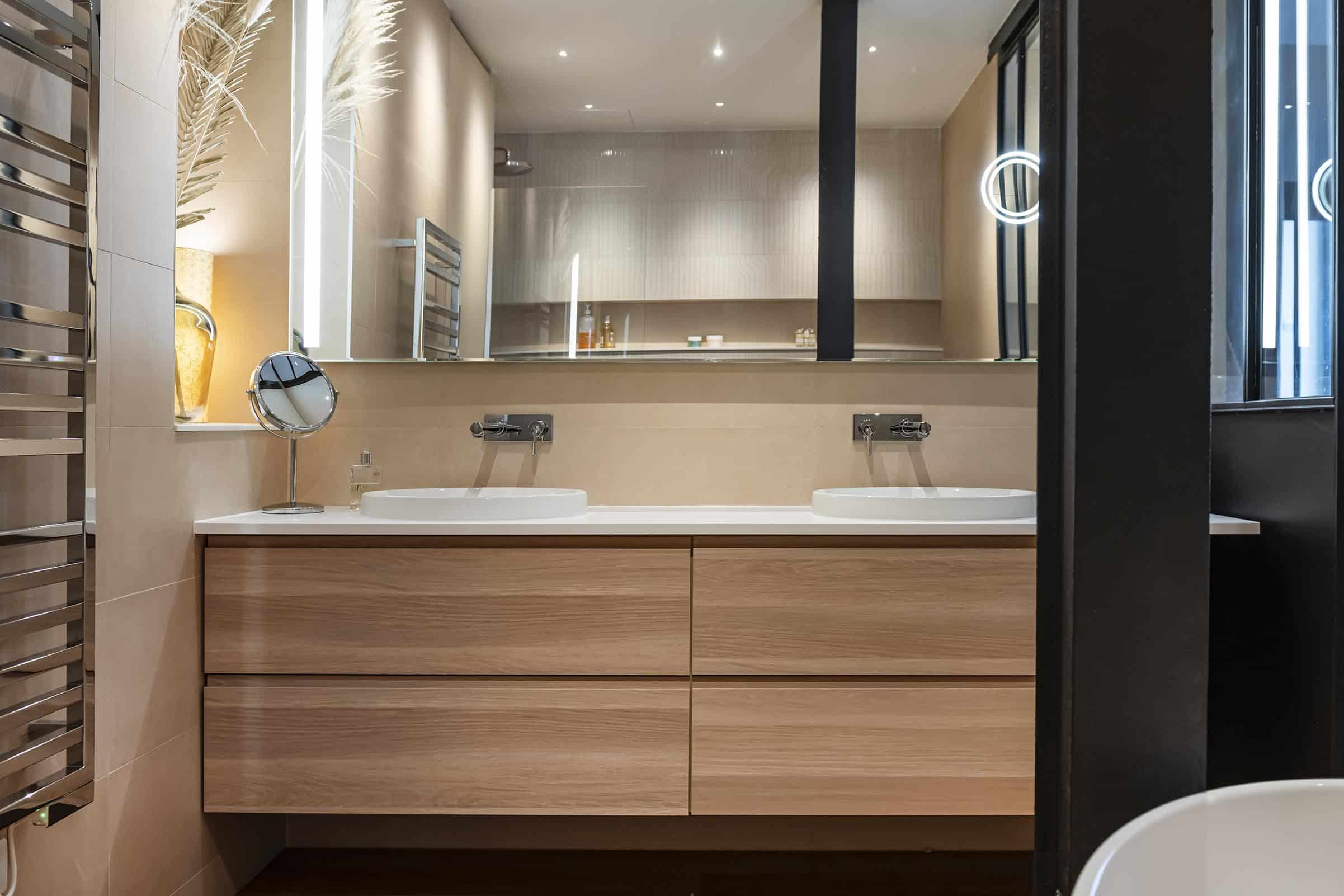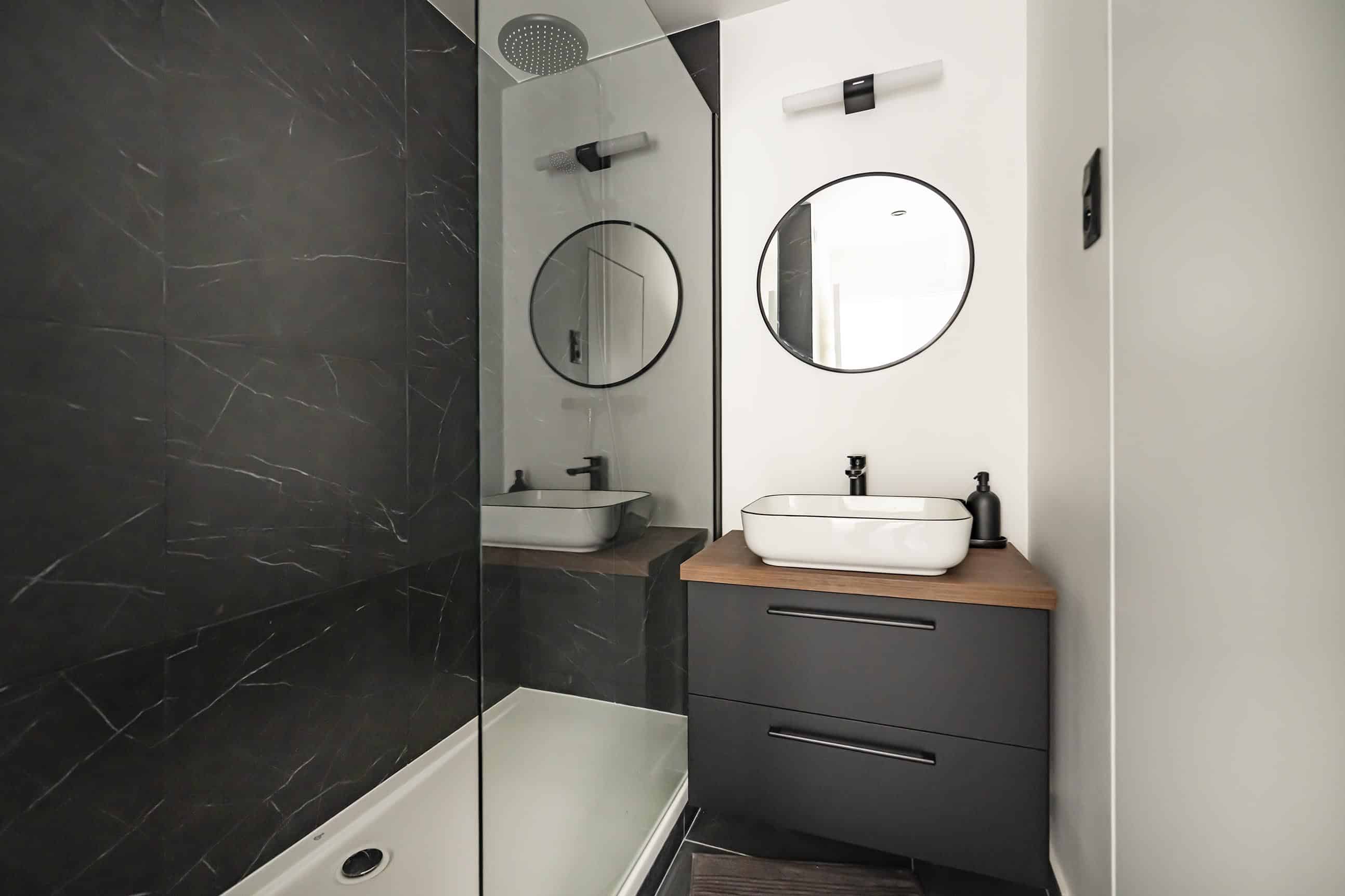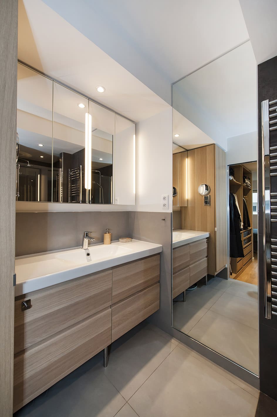 Retrouvez dans ce pêle-mêle des salles d’eau et des salle de bains réalisées par l’agence. Les photos ne sont pas toujours facile à faire dans ces petits espaces, mais cette compilation peut vous aider à trouver des idées et le style qui correspondra à votre projet de rénovation.
